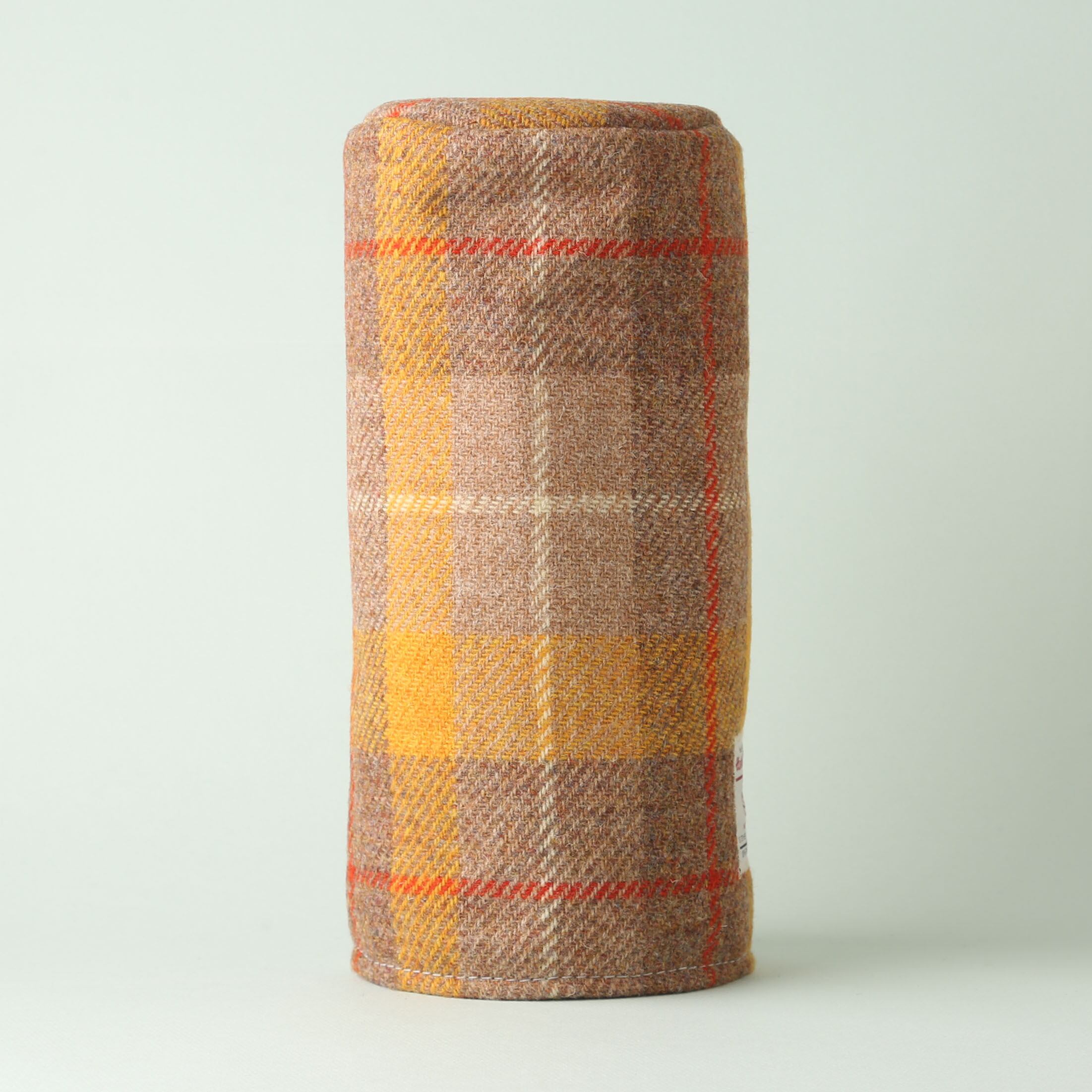 ハリスツイードは、スコットランドのアウター・ヘブリディーズ諸島で手織りされる高品質なツイード生地で、100%ピュアウールで作られており、そのウールも地元の羊から採取されたものが使用されます。ハリスツイードは、伝統的な技術と手作業によって作られるため、耐久性が高く、独特の風合いや温かみが特徴で、「ハリスツイード協会(Harris Tweed Authority)」によって厳格に管理されており、正規の製品には「オーブのマーク」と呼ばれる認証ラベルが付けられています。このマークは、製品が正式なハリスツイードであることを証明するものです。 ハリスツイードを使用した筒型筒型フェアウェイウッド用ヘッドカバーは、裁断にもこだわり、柄を合わせながら贅沢に使用しています。裏には毛足が短く軽さと上質な柔らかさを兼ね備えたイタリア製トスカーナフリースを使用。ヘッドが抜けてしまうのを防ぐため内側中段をゴム2段で絞りながら、2026年モデルは内側の仕様を変更し、クラブの出し入れを容易にしています。