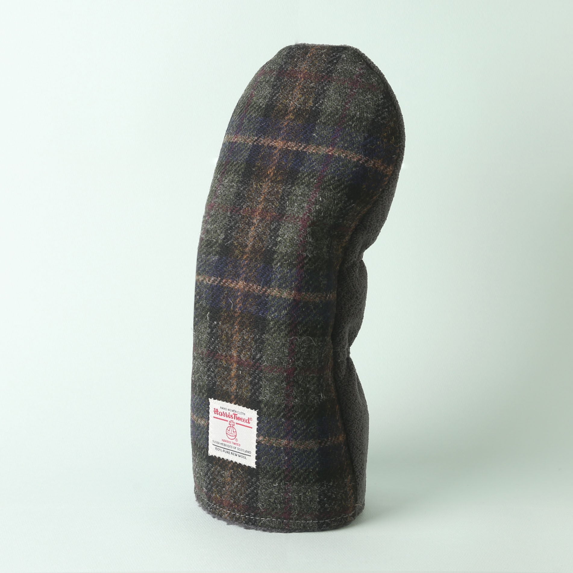 ハリスツイードは、スコットランドのアウター・ヘブリディーズ諸島で手織りされる高品質なツイード生地で、100%ピュアウールで作られており、そのウールも地元の羊から採取されたものが使用されます。ハリスツイードは、伝統的な技術と手作業によって作られるため、耐久性が高く、独特の風合いや温かみが特徴で、「ハリスツイード協会(Harris Tweed Authority)」によって厳格に管理されており、正規の製品には「オーブのマーク」と呼ばれる認証ラベルが付けられています。このマークは、製品が正式なハリスツイードであることを証明するものです。 ハリスツイードを使用したドライバー用ヘッドカバー(460CC対応、300〜340CC対応)は、裁断にもこだわり、柄を合わせながら贅沢に使用しています。裏地には毛並みの短いニット生地を使用。デザイン性と使用感を考慮し、表地と裏地で異なる素材を組み合わせています。中地にはボリュームと弾力、柔らかな肌触りが特徴のシープボアフリースを使用しています。