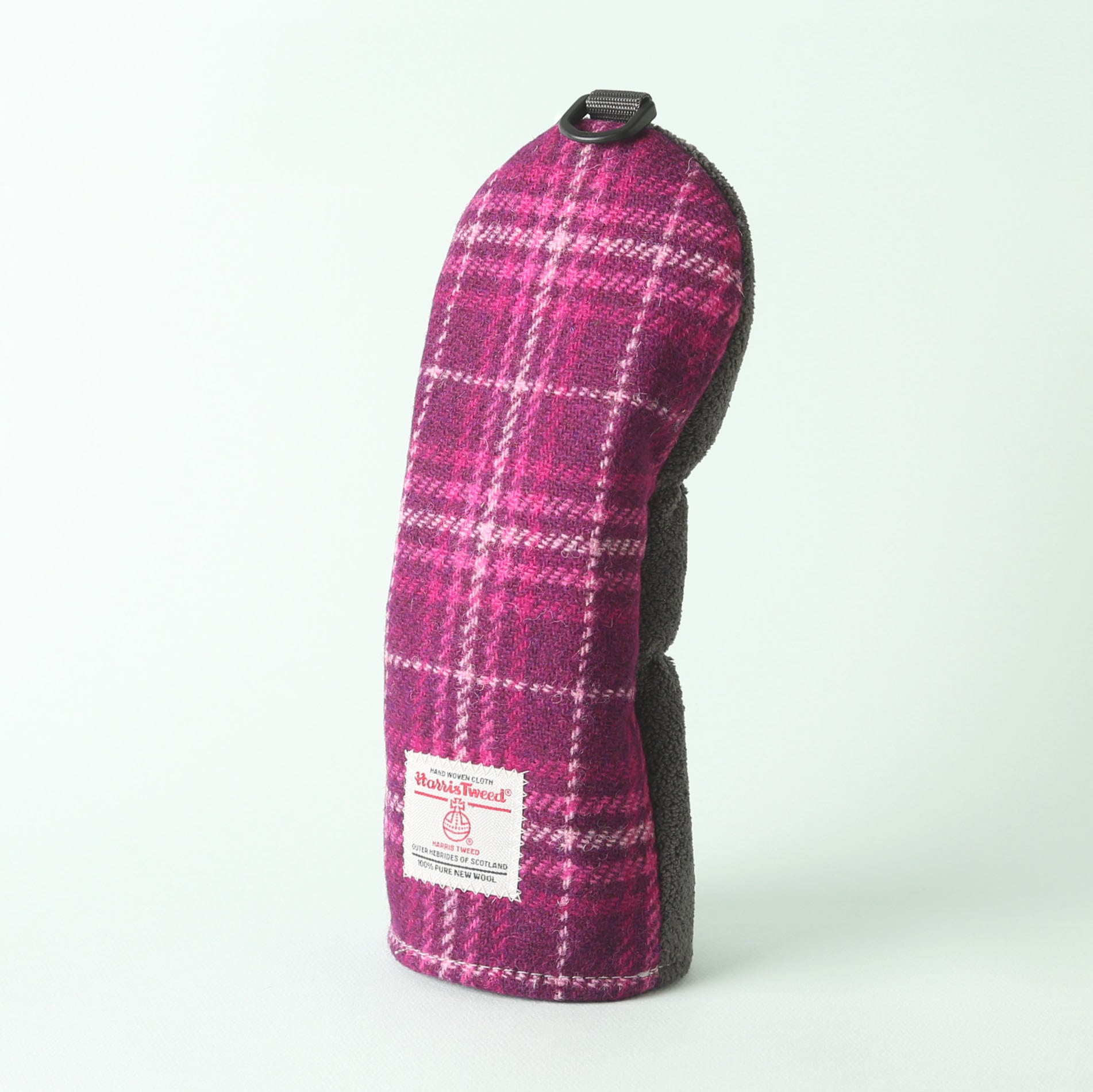 ハリスツイードは、スコットランドのアウター・ヘブリディーズ諸島で手織りされる高品質なツイード生地で、100%ピュアウールで作られており、そのウールも地元の羊から採取されたものが使用されます。ハリスツイードは、伝統的な技術と手作業によって作られるため、耐久性が高く、独特の風合いや温かみが特徴で、「ハリスツイード協会(Harris Tweed Authority)」によって厳格に管理されており、正規の製品には「オーブのマーク」と呼ばれる認証ラベルが付けられています。このマークは、製品が正式なハリスツイードであることを証明するものです。 ハリスツイードを使用したフェアウェイウッド用ヘッドカバーは、裁断にもこだわり、柄を合わせながら贅沢に使用しています。裏地には毛並みの短いニット生地を使用。デザイン性と使用感を考慮し、表地と裏地で異なる素材を組み合わせています。中地にはボリュームと弾力、柔らかな肌触りが特徴のシープボアフリースを使用しています。